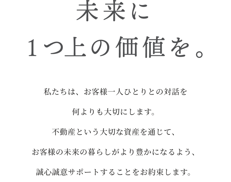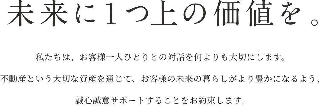 不動産のプロフェッショナルとして、コンサルティングから売買、仲介までワンストップでサポート。お客様のあらゆるニーズに最適なご提案をいたします。